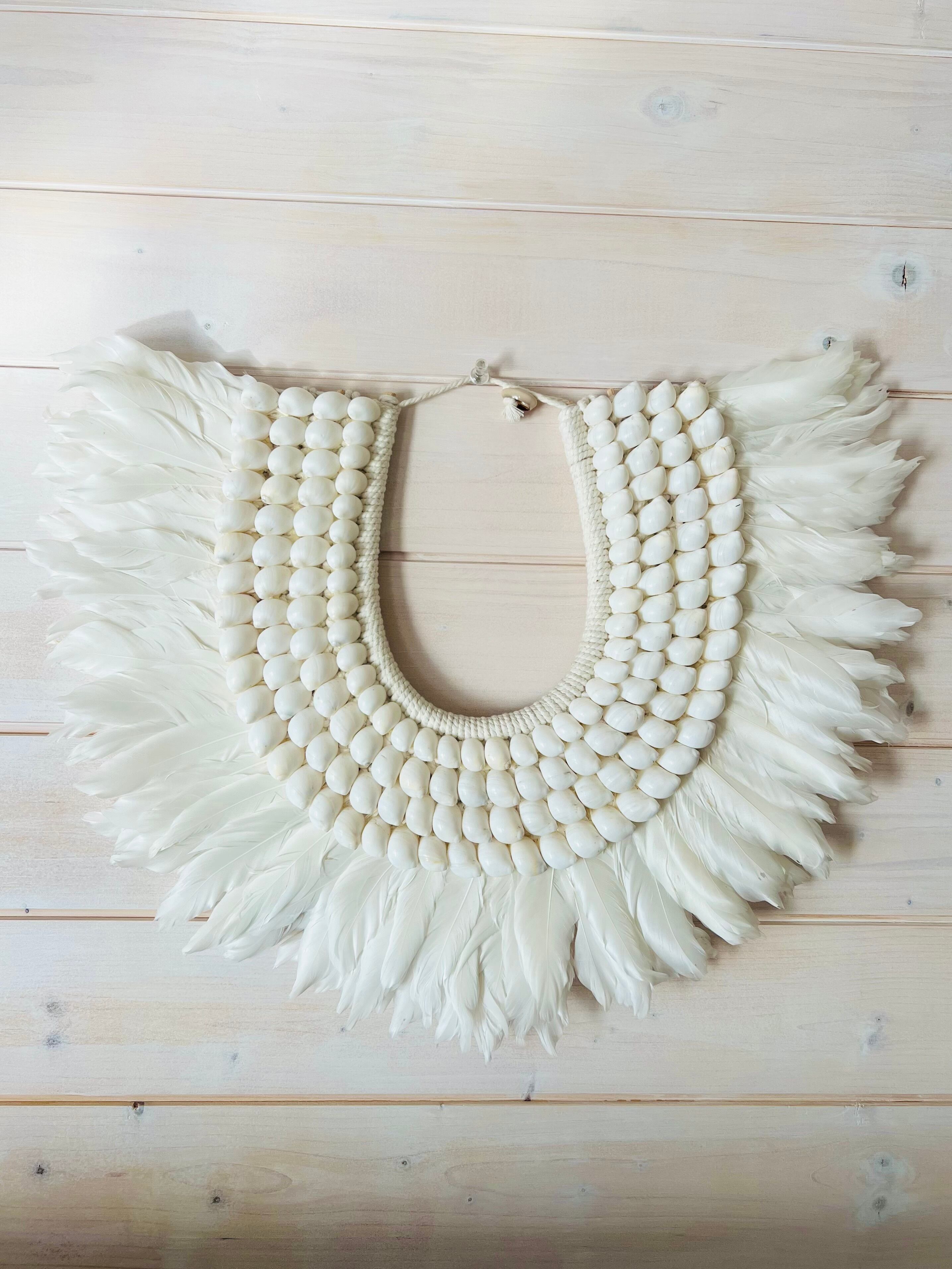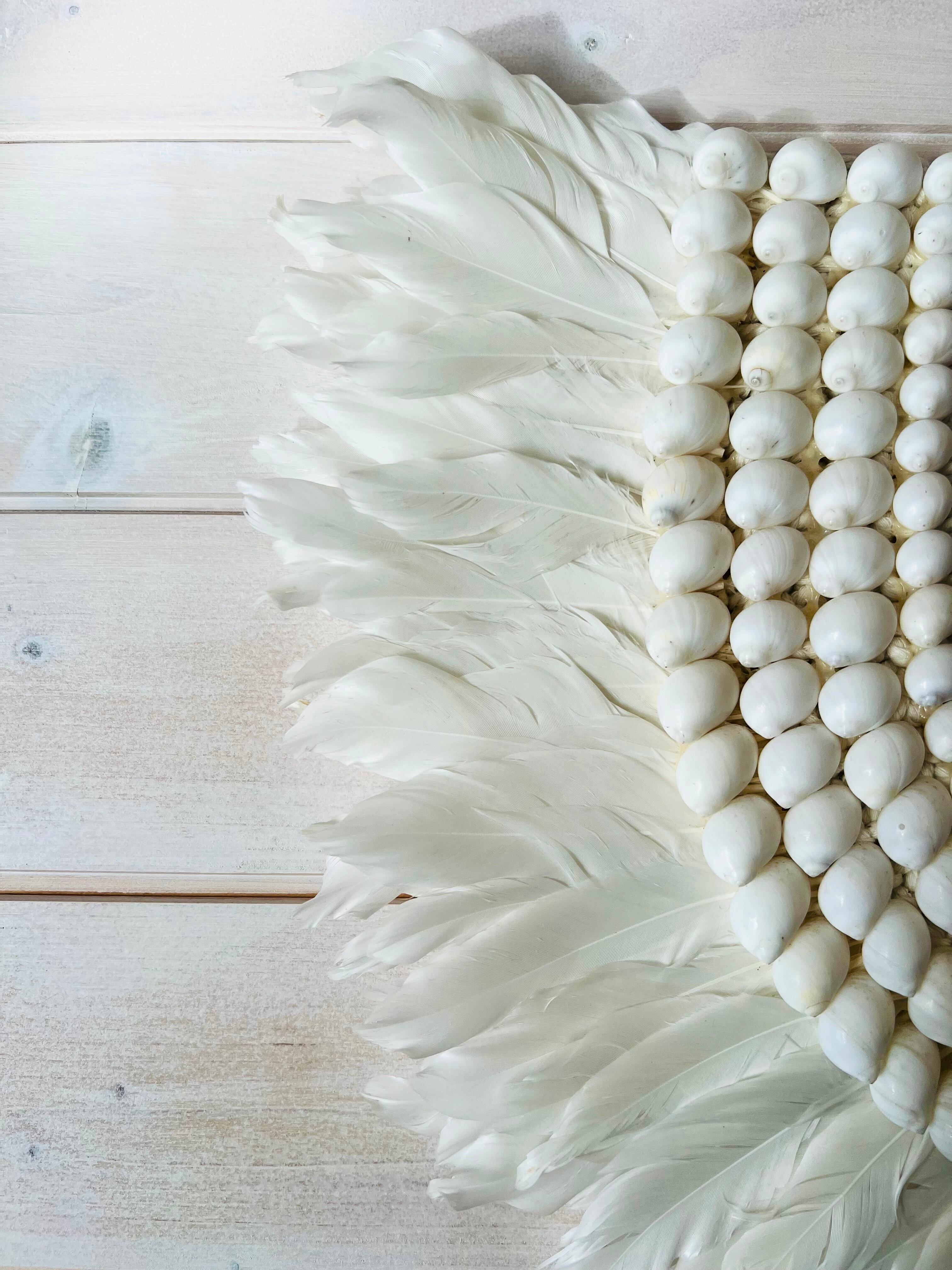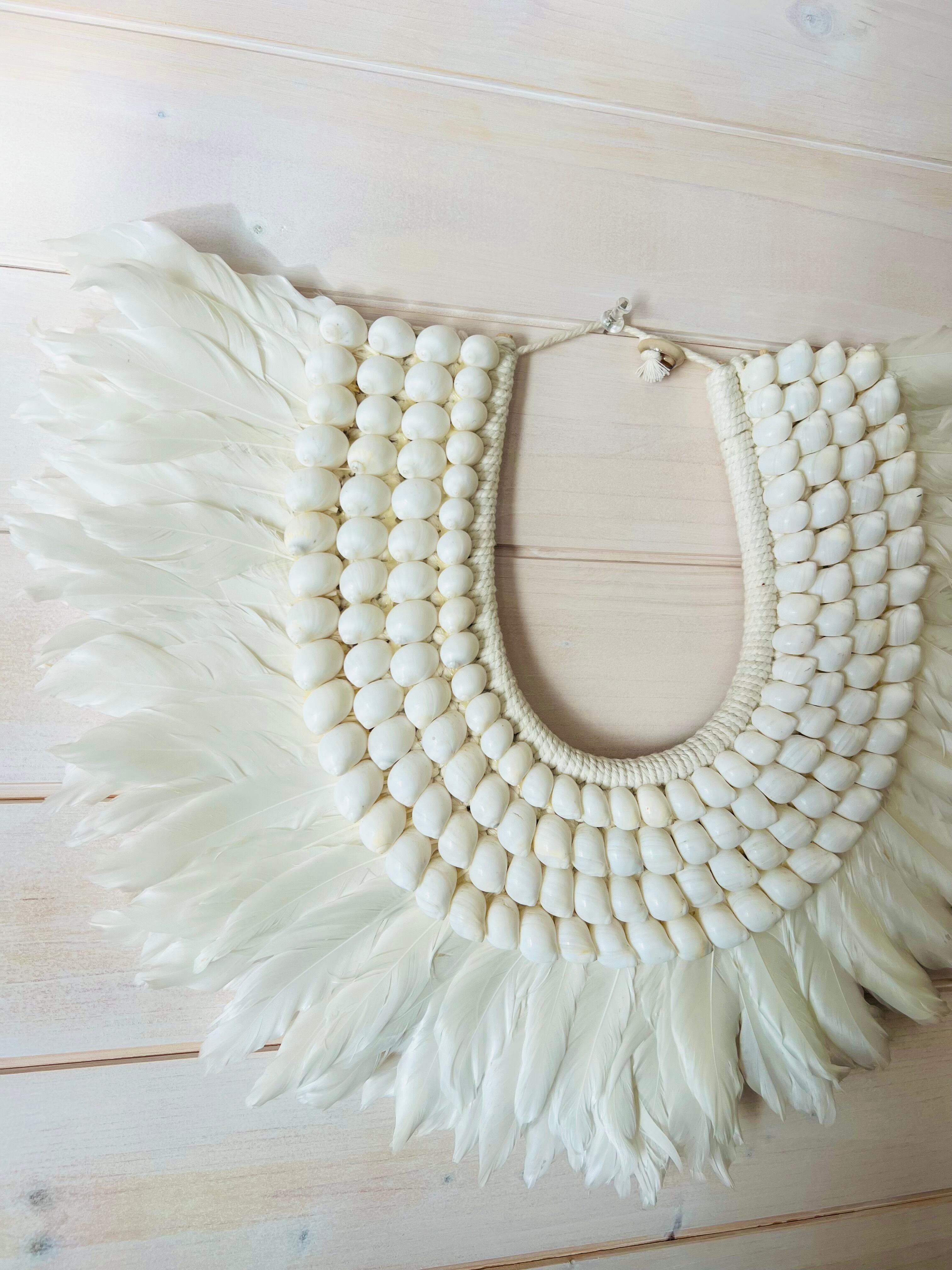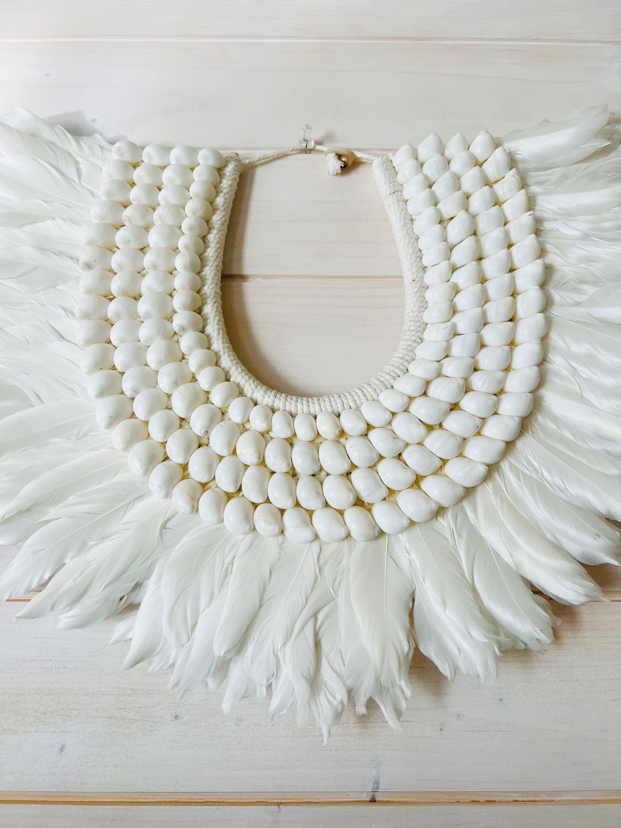このタペストリーは、フェザーとシェルという自然素材を使い、心を癒す温かみを体感できます。柔らかなフェザーの質感と、シェルの独特な輝きが、お部屋を南国のリゾートのような雰囲気に包み込んでくれます。