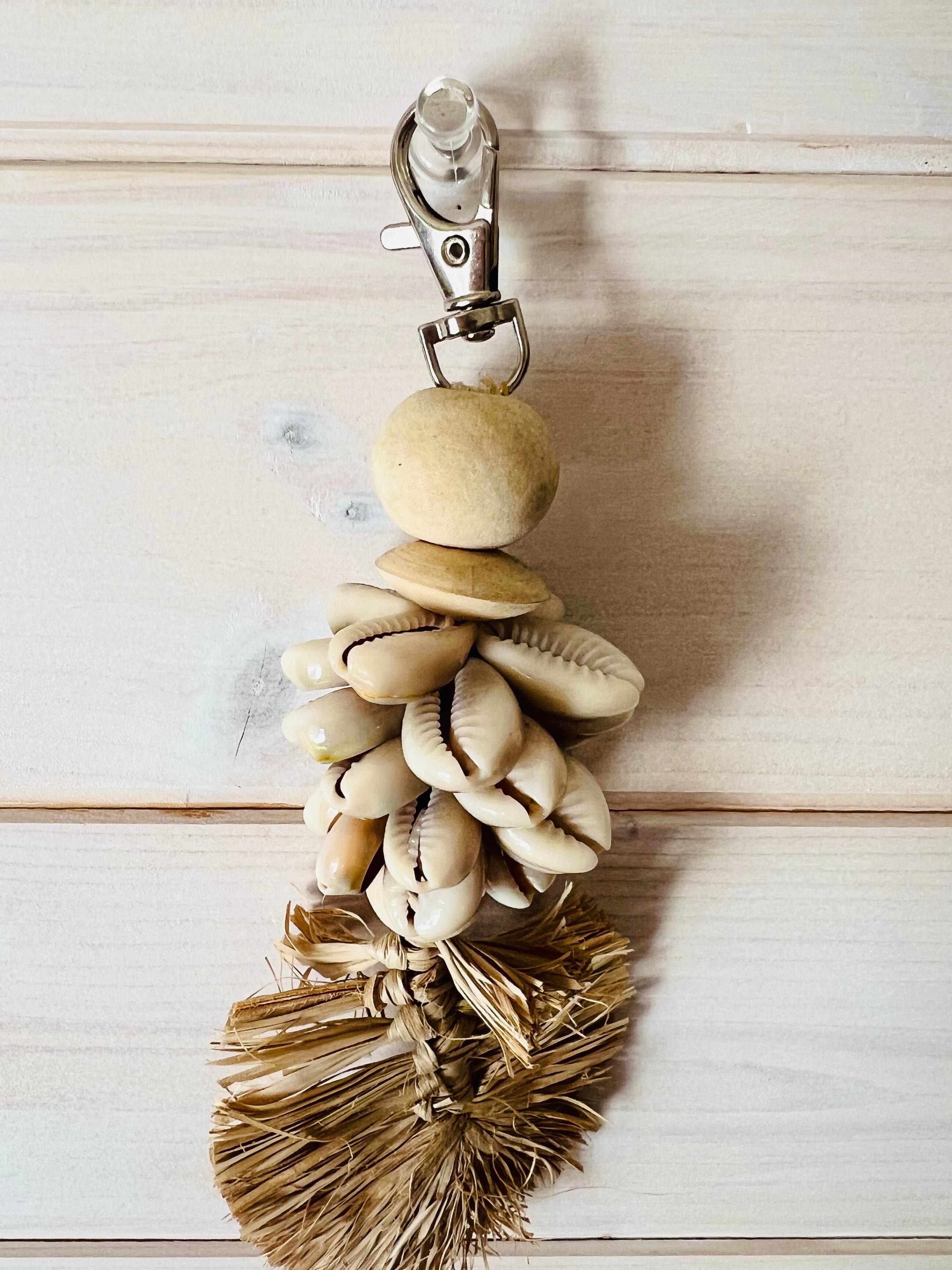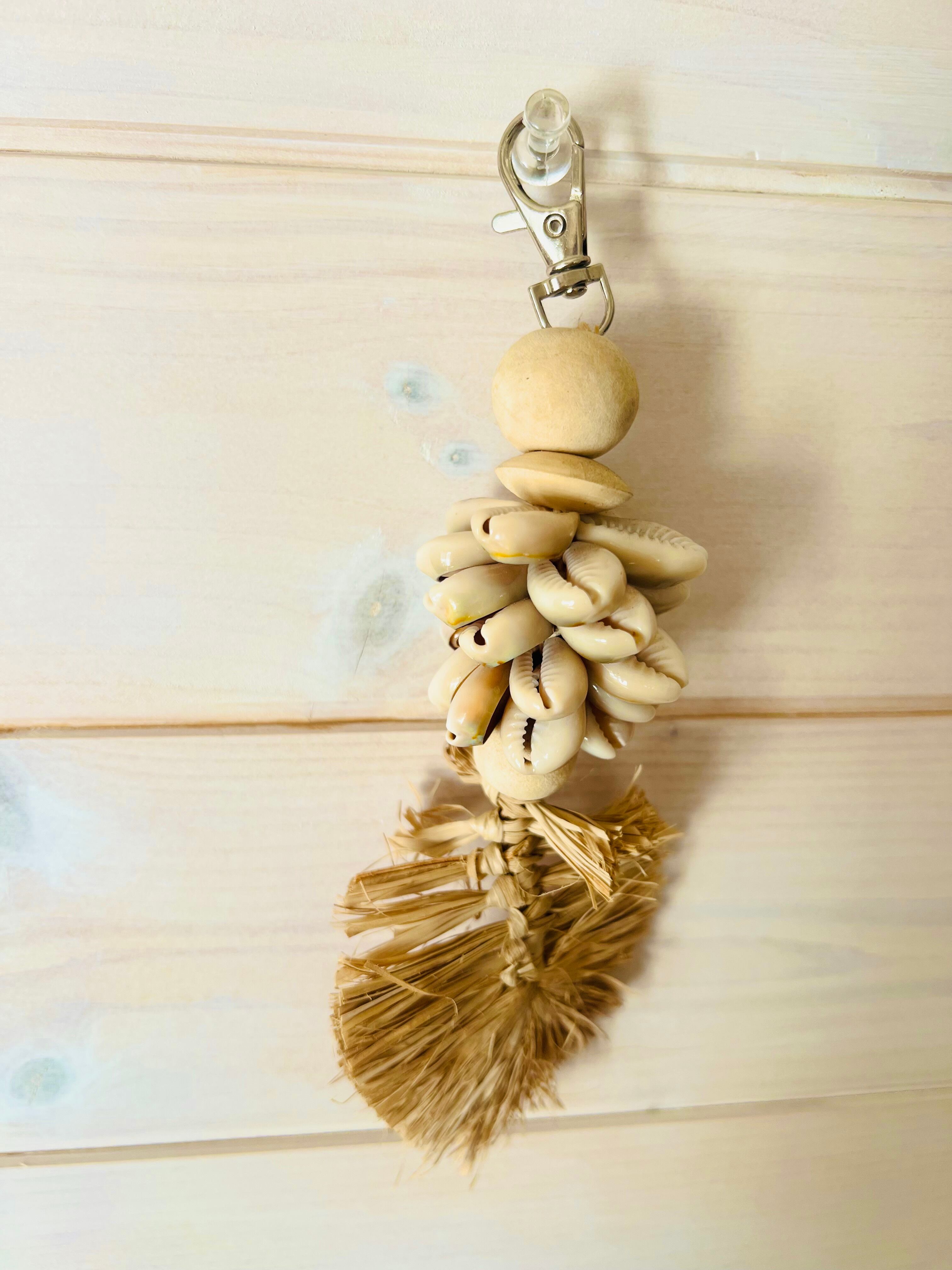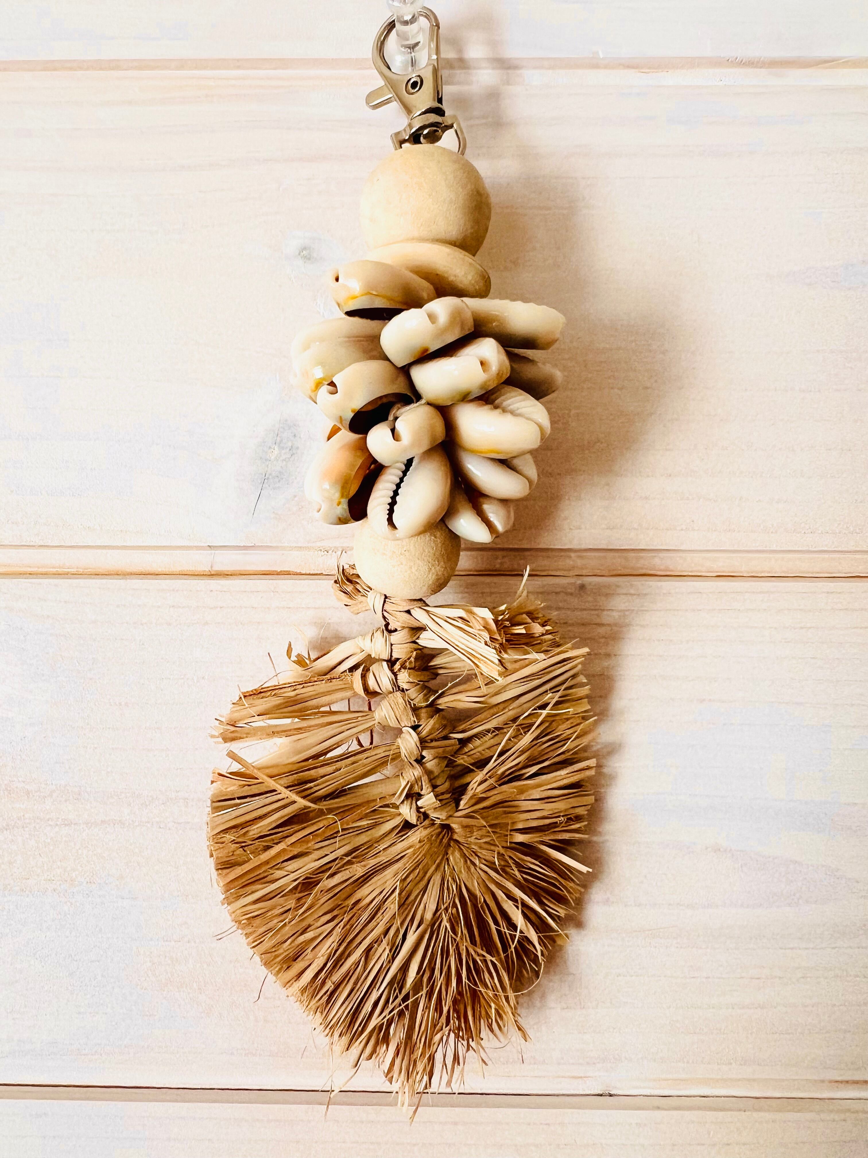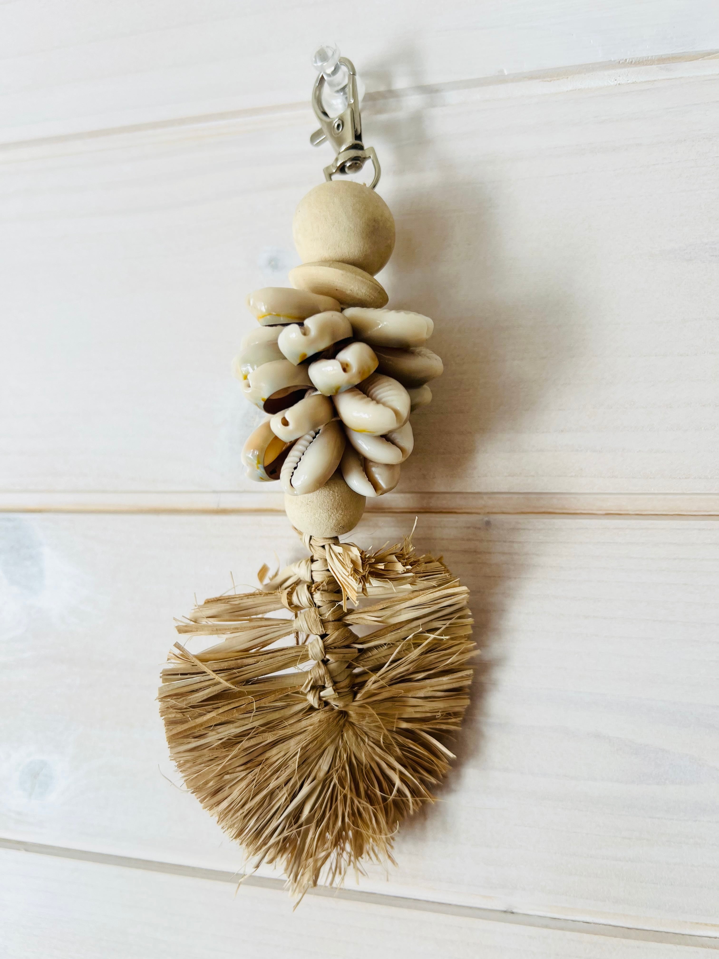 シェル×ラフィアリーフ チャーム キーホルダー